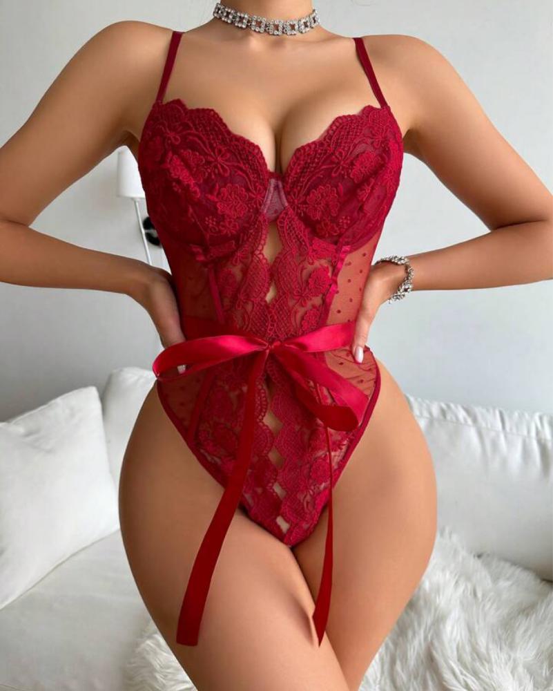 ملابس داخلية نسائية مثيرة بحزام من الدانتيل وأشرطة رفيعة