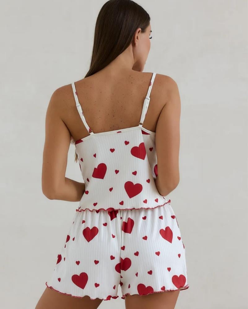 طقم بجامة شورت وبلوزة بطباعة قلب
