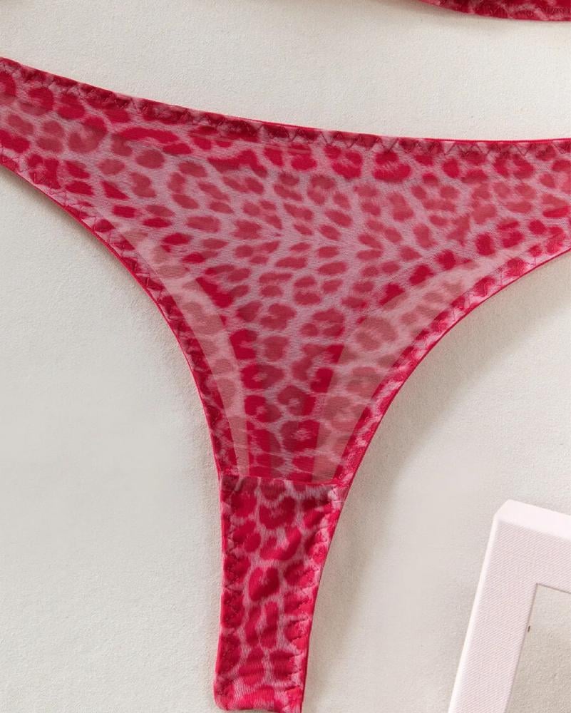 طقم نسائي داخلي جذاب بطبعة جلد النمر - فوشي