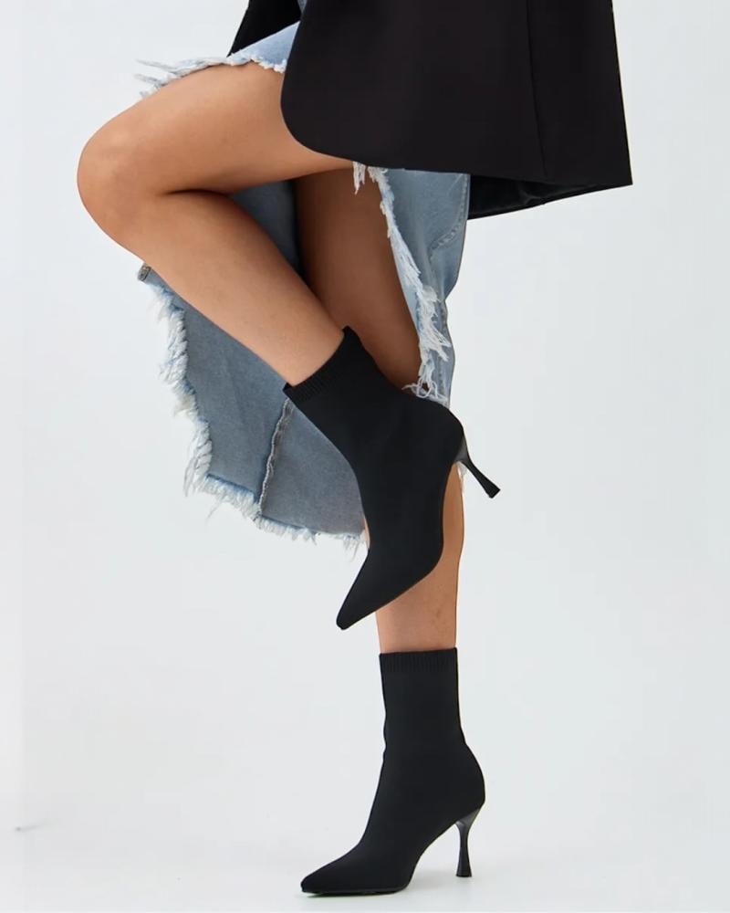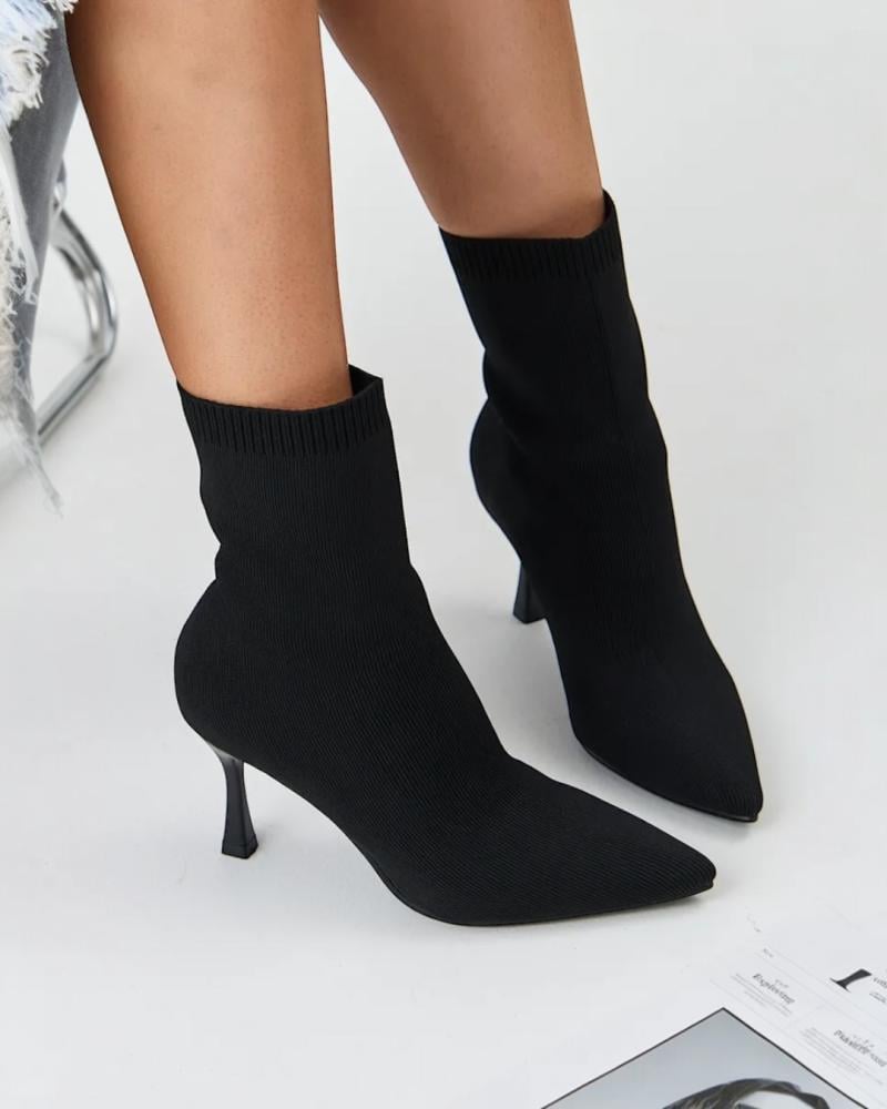 حذاء بوت نسائي بكعب عالي وتصميم جورب مرن – أسود كلاسيكي
